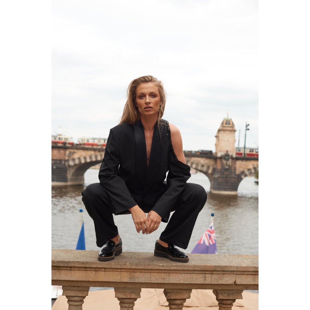 Tento exkluzivní model je víc než jen sako – je to fashion statement, který propojuje módu s příběhem, ručně vyráběnou módu a precizní krejčovské umění. Asymetrický střih přináší moderní twist na klasické tuxedo, zatímco upcyklované oblečení dává nový život kvalitním materiálům.