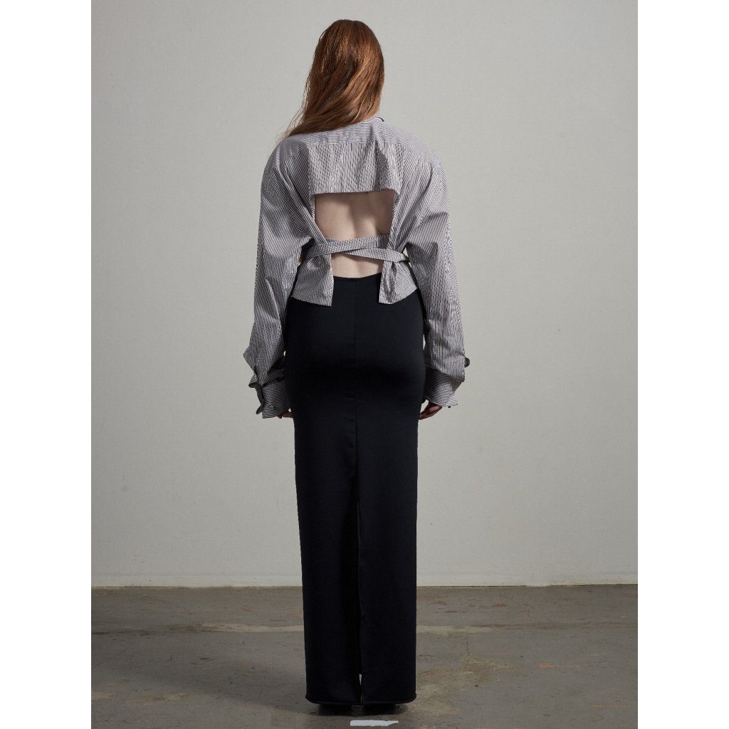 • Backless Top – oversized košile s odhalenými zády z upcyklovaného pánského modelu