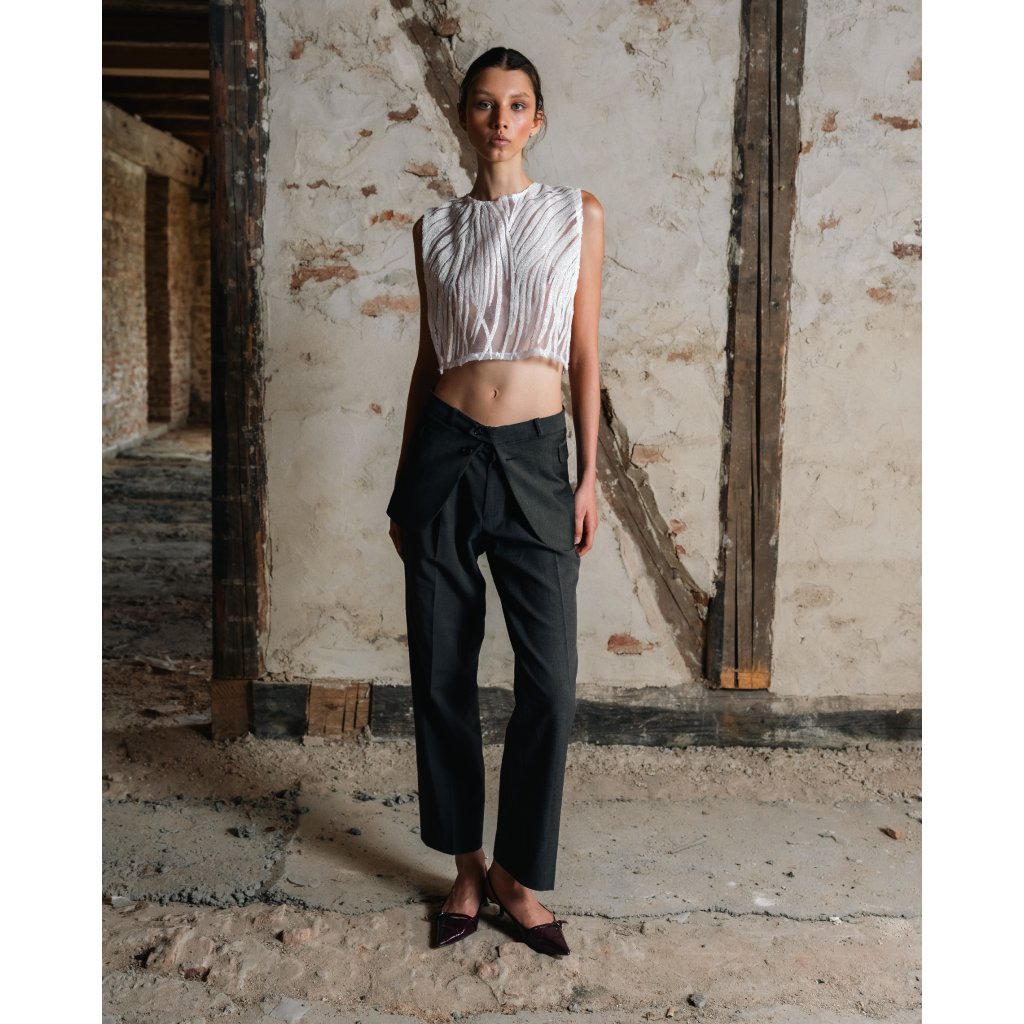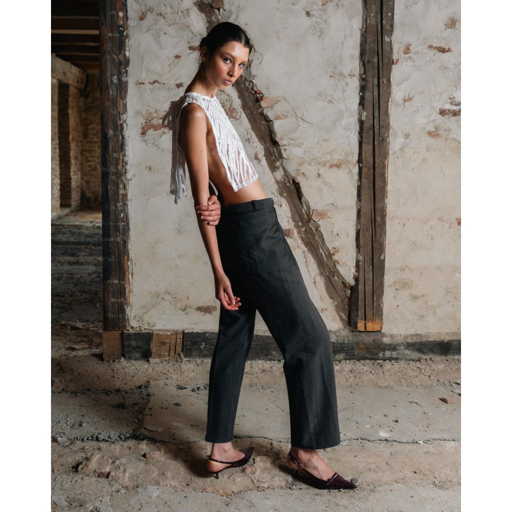 Vytvořené z dead stock metráže, aktuální model je možné zakoupit přesně v provedení jaké vidíte na fotce, další se dají vyrobit ve stejném střihu ale jiném materiálu.