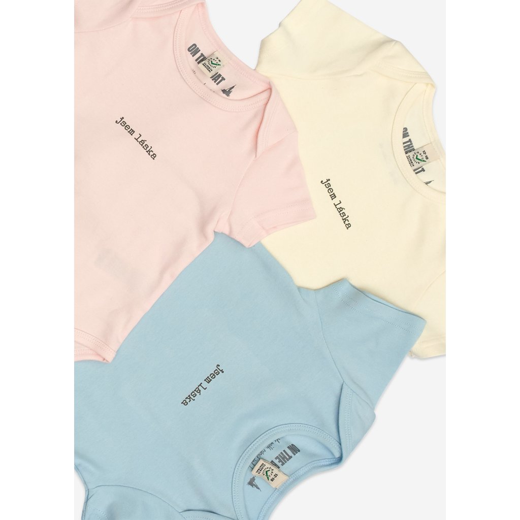 Dětské body je z organické certifikované bavlny, najdete ho ve třech barevných variantách.