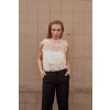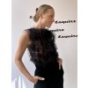 Tylový transparentní top je exluzivní kousek kolekce Meet Her in The City. Tento model není upcyklovaný, je komplet z nového materiálu. Materiál je doslova vyšitý z tylu. Přední díl i zadní díl je každé dva centimetry prošitý a nařasený . Na zadním díle je navíc členění a zdobení perlovým zapínáním. Zvlášť náročné provedení dělá z tohoto modelu jedinečný, nadčasový kousek.