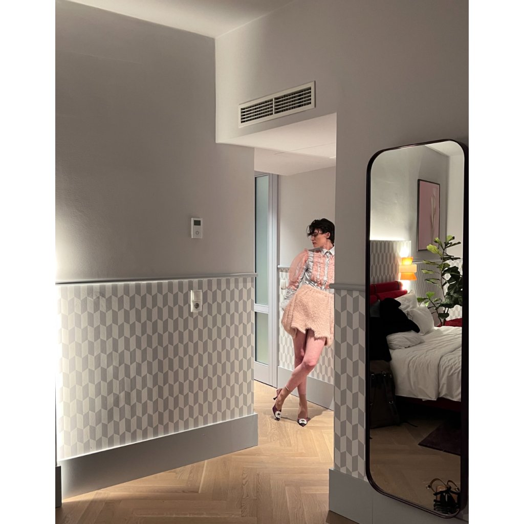 Model je vytvořený s vintage pánské košile formou upcyclingu.