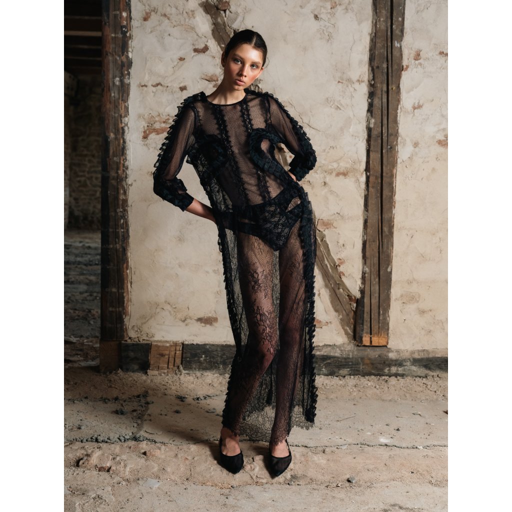 Upcycled Unique lace black dress